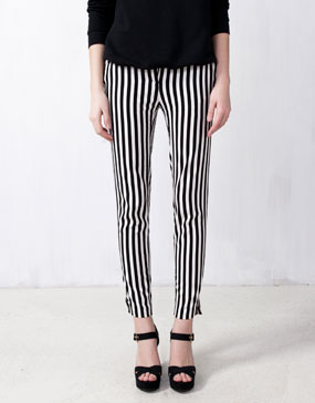 Ako želite da budete atraktivne, drugačije i šik, da istaknete vasu figuru i noge stavite u prvi plan pantalone sa crno-belim prugama neizostavni su komad za vas. Mozete ih kombinavati sa jednostavnim majicama i efektnim nakitom ili nesto smelijim odevnim komadima jarkih boja.